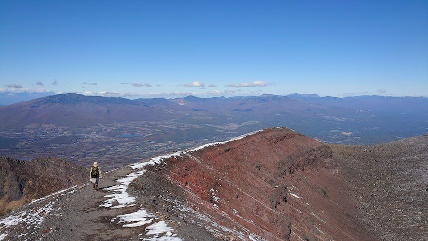 浅間山といえば活火山の荒々しい山を想像していましたが、登山道のほとんどが歩きやすくて美しい森のなか。さすがに山頂付近は火山そのものでしたが、登る前のイメージとは違いとてもやさしい山でした。