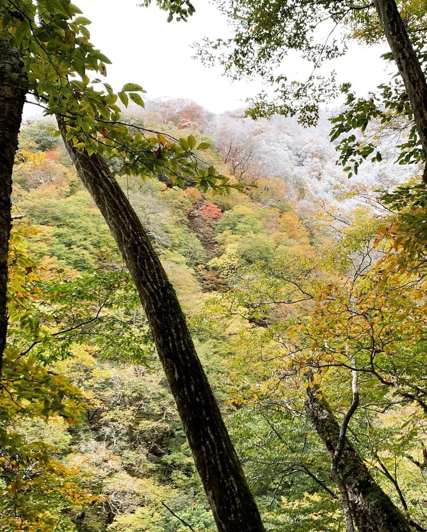 夜の間に雪となり、翌朝は周囲の山々まで初冠雪。でも七ツ石山までなら登山道にはほぼ雪が無く、荷物は小屋に置いて空身で上がれたので、雪の降る時間も量もちょうど良く、貴重な雪景色を見ることができました。