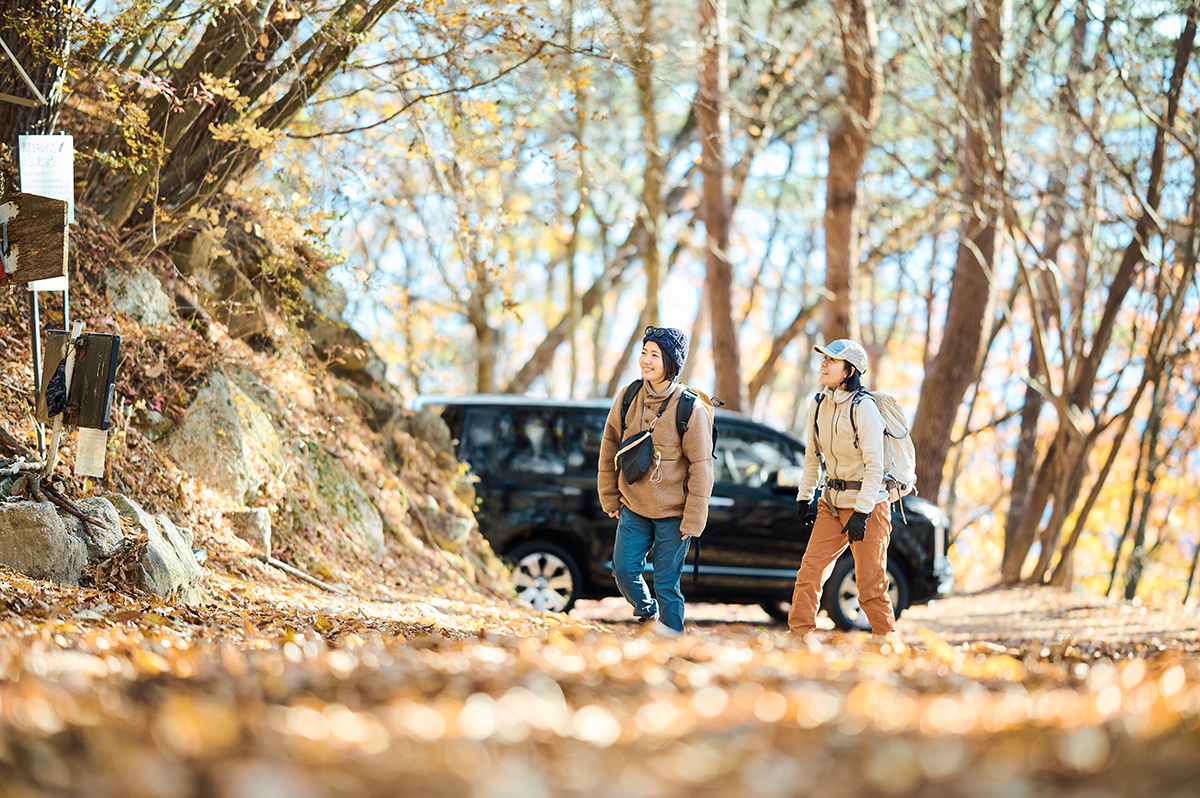 「秋のキャンプ場とか林道って落ち葉で滑ったりすることもあるんですが、四駆ってやっぱり安心感が違います。移動時のストレスがないから、そのぶん到着してからの時間を満喫できます」と黒澤さん。