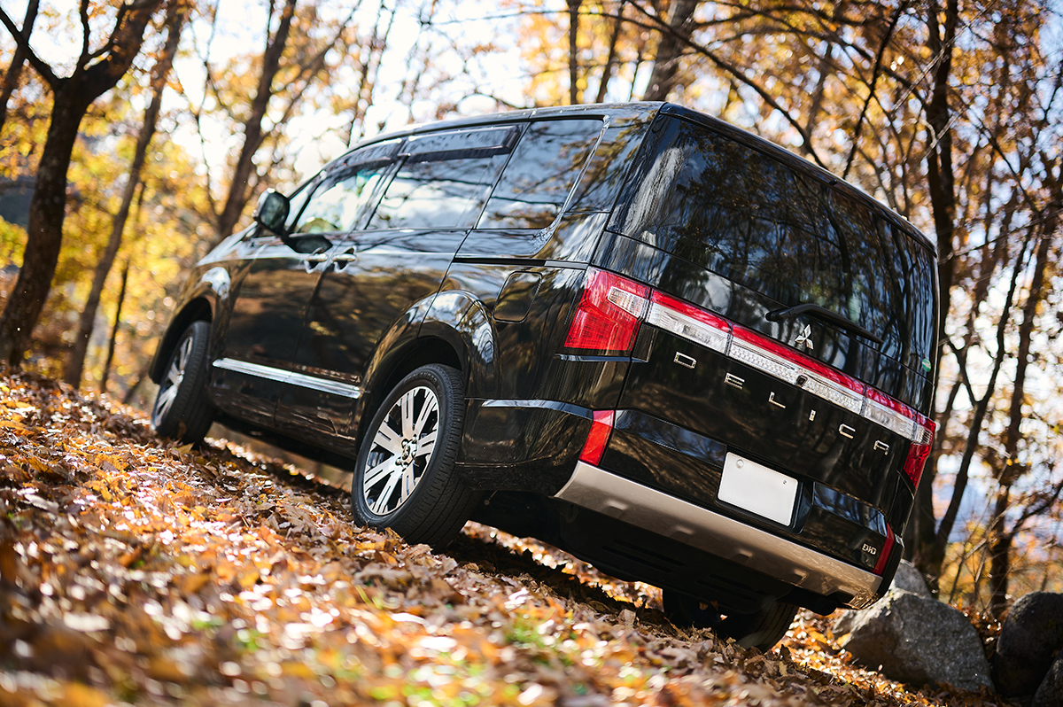 じつはこのデリカD:5、スリップしやすい路面で発進するときも、タイヤのスリップを感知したら電子制御4WDが自動的にコントロールしてサポート。ほかにも横滑りを検知した場合なんかにも、自動でクルマを安定させたりと、安全性を高める機能がもりだくさん。
