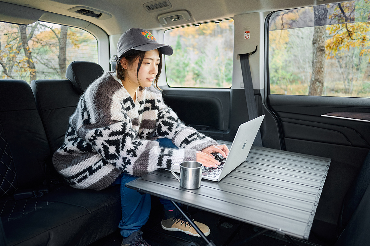 「たまにキャンプ中に仕事をすることはあるんですけど、どうしても外の音が気になっちゃって。でもクルマの中なら集中できるし、オンラインミーティングなんかもしやすいですね」