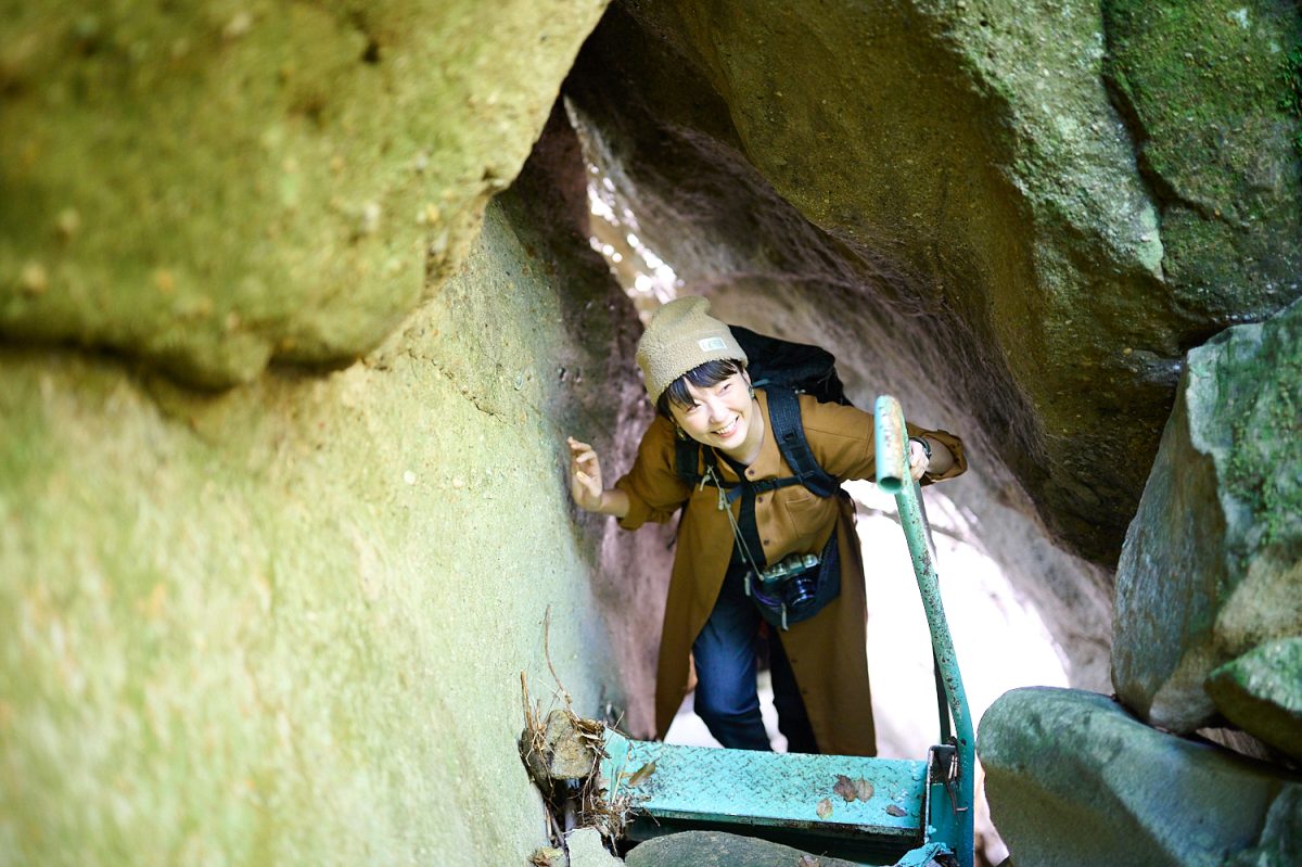 登山口をスタートし、しばらくすると、耳にしていた川のせせらぎが滝の音に変わった。最初に現れる滝、梅太郎渕が百間山渓谷のプロローグ。次に進む道は、巨大な岩と岩の隙間に設けられた階段の先。岩に吸い込まれていくような気分になりながら登っていくと、本格的に、巨岩と水が織りなす滝の世界が始まった。