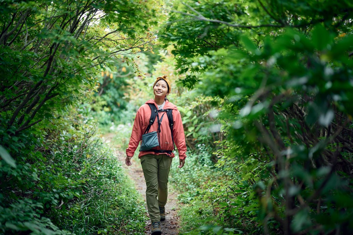 佐渡島には標高1,000m前後(島内で一番高い山は、金北山/標高1,171m)の山が連なり、日帰りから縦走登山まで、さまざまな歩き方と楽しみ方ができるもの魅力のひとつ。リファさんが今回歩いたのはドンデン高原にある、標高940mのドンデン尻立山。ドンデン山荘から片道45分ほどでたどり着ける、初心者でも安心のコース(片道約700m)。