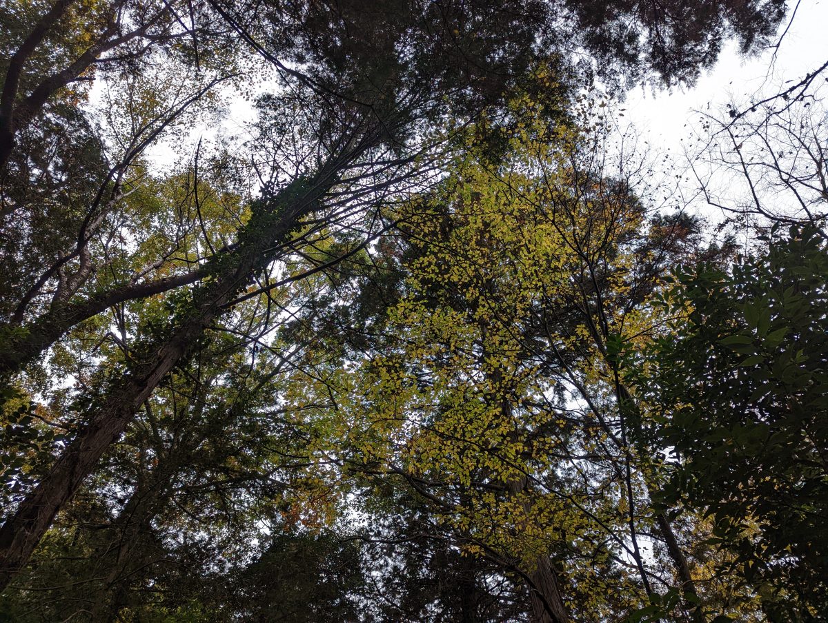落ち葉の上にも下にも無数のどんぐりが落ちていました。見上げると林を作っている大きな木々はちょうどいい距離を保って風に揺られています。