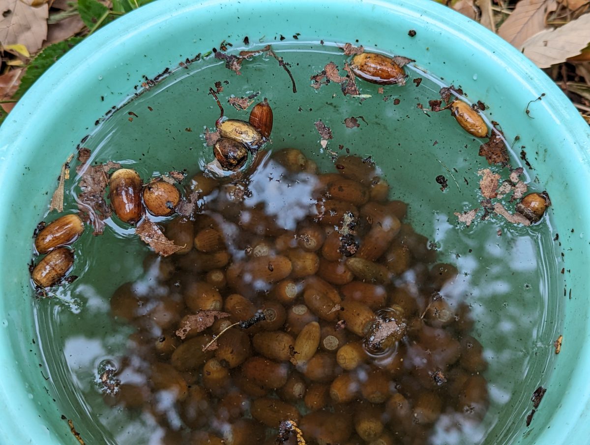 浮いてきたどんぐりは虫に食われていたり、中が腐っている可能性があるので、沈んだどんぐりだけを土に蒔きます。