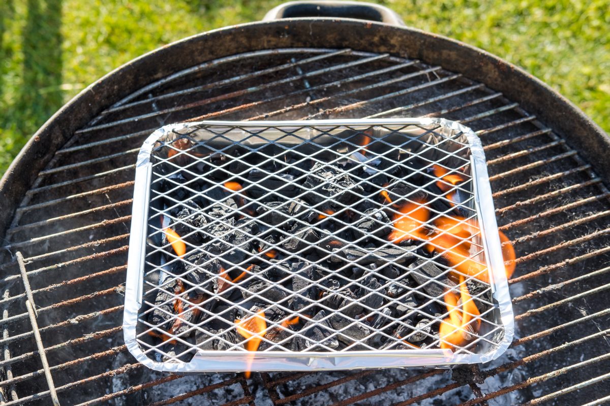 焼く以外にも付属のアルミトレイを2つ使用することで、燻製調理にもチャレンジできます。燻製チップを別途購入して受け皿のアルミトレイに、もう一つのアルミトレイでアミと一緒にフタをすればスモーク室の完成です。