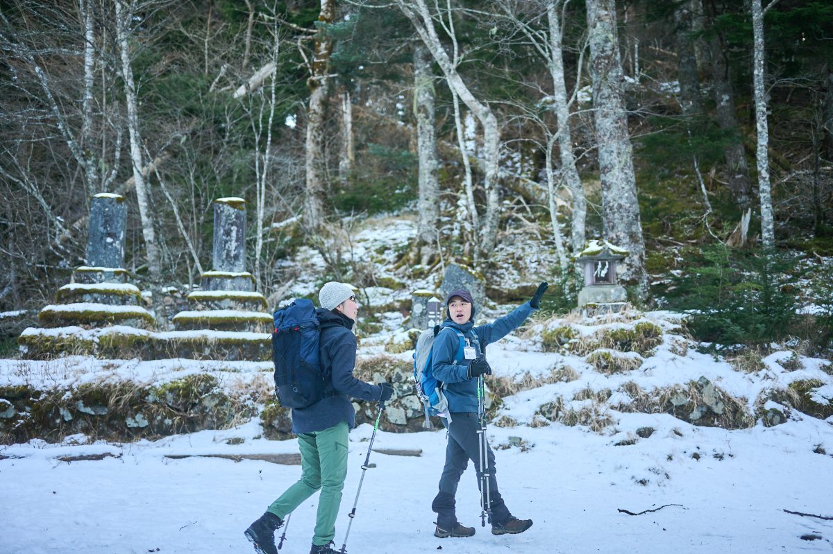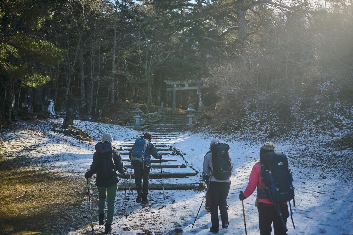 そんな冬富士ですが、五合目までは比較的穏やかな状況です。樹林が風を遮ってくれ、道々には富士講の歴史の跡が息づいています。