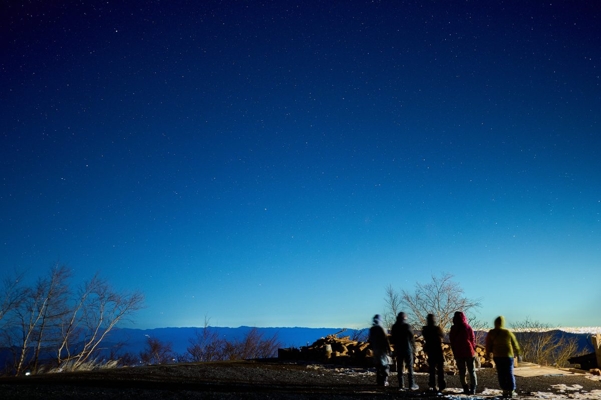 食後は、暖かい格好をして小屋の前から星空観察をしたり、富士吉田や遠く首都圏の夜景を眺めて楽しみます。