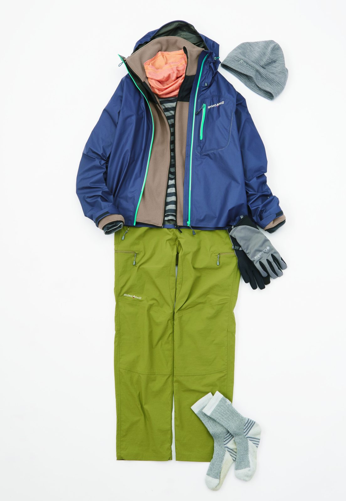 コーディネート/トレントフライヤージャケット Women’s ¥25,080、サウスリム パンツ ライト Women’s¥7,480 (ともにモンベル/モンベル・カスタマー・サービス)、マウンテンバーサマイクロジャケット¥11,880、トレッキングデュアブルウール¥2,860 (ともにザ・ノース・フェイス/ゴールドウインカスタマーサービス)、Ws150フィールメリノロングスリーブティー¥9,350(フォレストワードローブ/好日山荘)、メリノプラントベースダイネックゲイター¥3,630(スマートウール/ロストアロー)、デソリサーマルハット¥7,150(フーディニ/フルマークス)、ウィメンズマックストレイルヘリックスグローブ¥5,060(コロンビア/コロンビアスポーツウェアジャパン)
