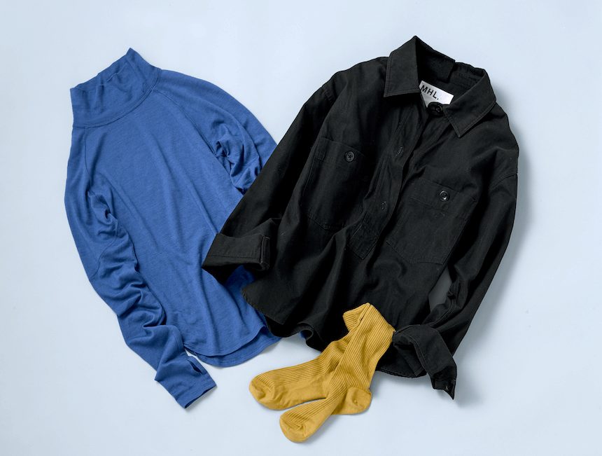 パンツは山でもまちでも兼用し、 ベースレイヤーやジャケットをチェンジ。肌に触れる部分はすべてウールをチョイス。汗をかいても臭いが気にならないうえ、さらさらな肌ざわりが心地よく、日常でも着る頻度が高いそう。