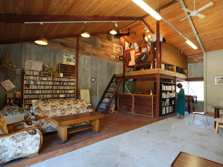 中央アルプスが目の前にそびえるゲストハウス「赤石商店」では、広々とした空間を一棟貸し切りで利用でき、部屋でもギャラリーでも好きな場所で仕事や趣味の時間をすごせる。