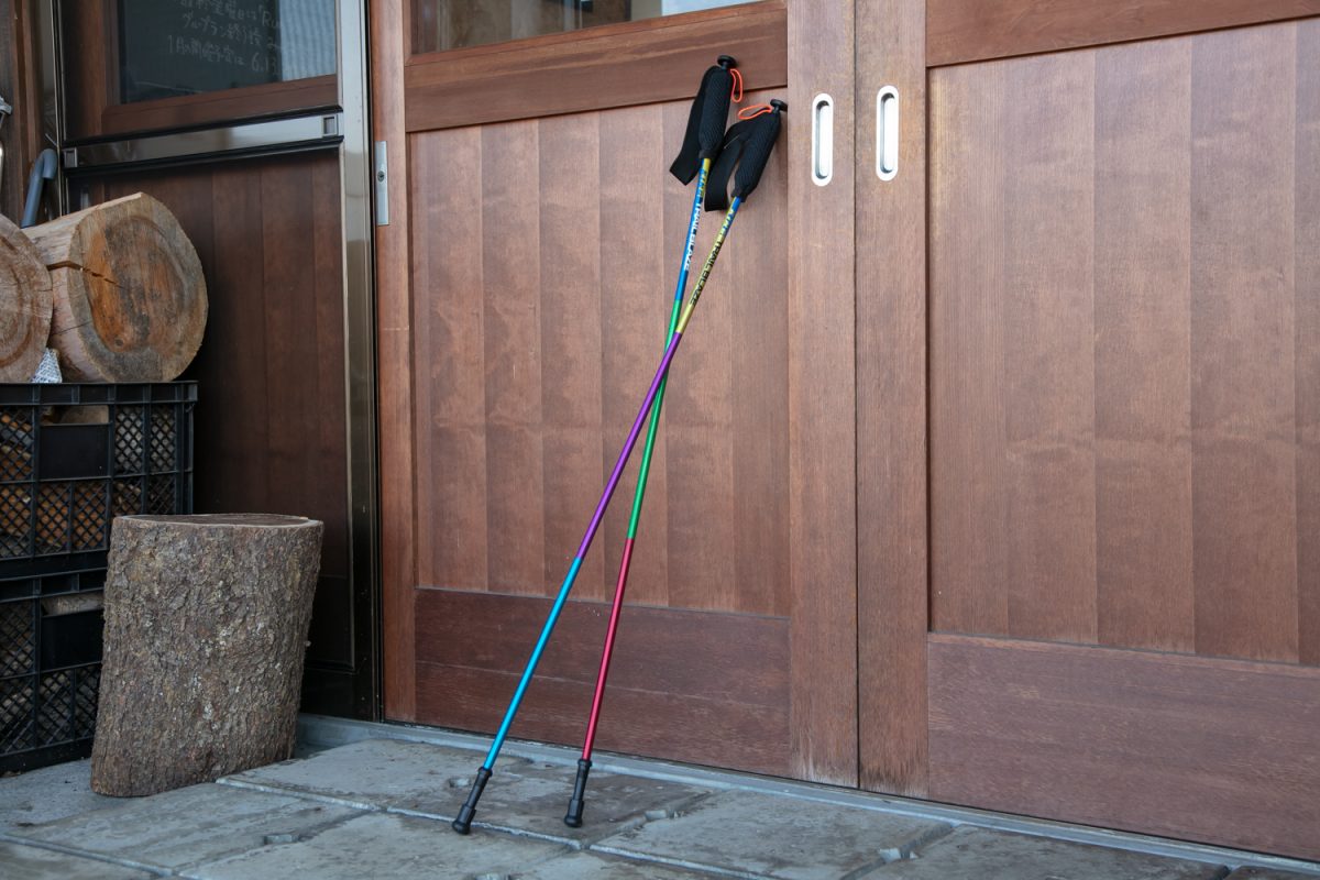 ほそ~い見た目にちょっと不安を感じる人もいるかもしれないけれど、田中陽希さんも使う山岳レーサー御用達のブランド。素材はアルミ製、100㎝サイズで1本わずか125g。驚く軽さと、たたんだ際のコンパクトさに注目。バックパックのサイドポケットにするりと入り、サッと出し入れしやすい。とにかく軽いので今日の山ならいらないかも? と、トレッキングポールを持っていくか迷う必要なし。マルチカラーが山で映えてかわいい。