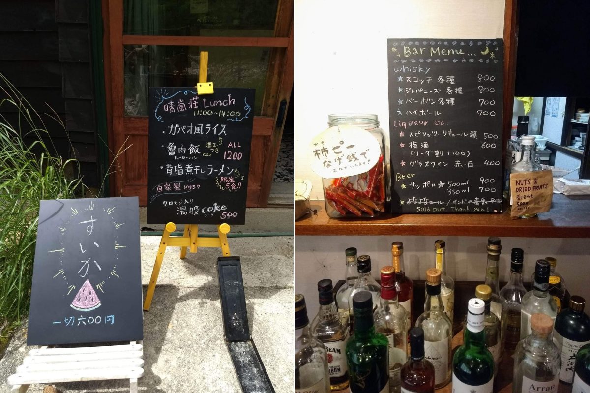 温泉に留まらず、晴嵐荘はグルメをはじめとするサービスが充実。夕食のスパイスカレーも人気だが、ランチにはエスニック料理を中心としたメニューが並ぶうえ、シーズン中にたまにしか提供されない自家製の魚介出汁と太麺にこだわったラーメンもある。夜にオープンするバーに、種類豊富なお酒が取り揃えられているのも魅力的。さらに2,000円で七厘のレンタルが可能なので(炭付き、要予約)、アルプスに囲まれた絶景のロケーションのなか、山小屋の前の河原でバーベキューを楽しめる。