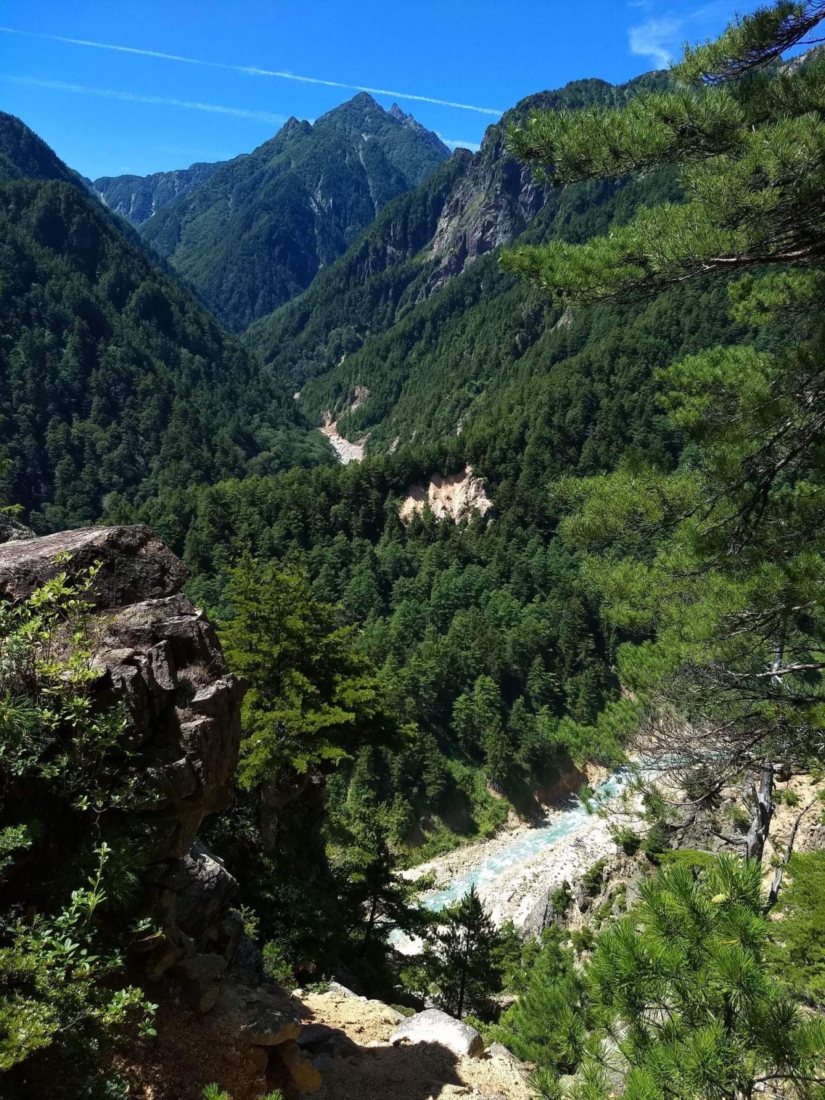 晴嵐荘からは竹村新道を登った先にある湯俣岳が最寄りのピークになるが、急登なので健脚向けのコース。おすすめしたいのは、竹村新道の途中にある展望台だ。山小屋から片道40分ほどでたどり着くことができ、南側に槍ヶ岳を一望できる。