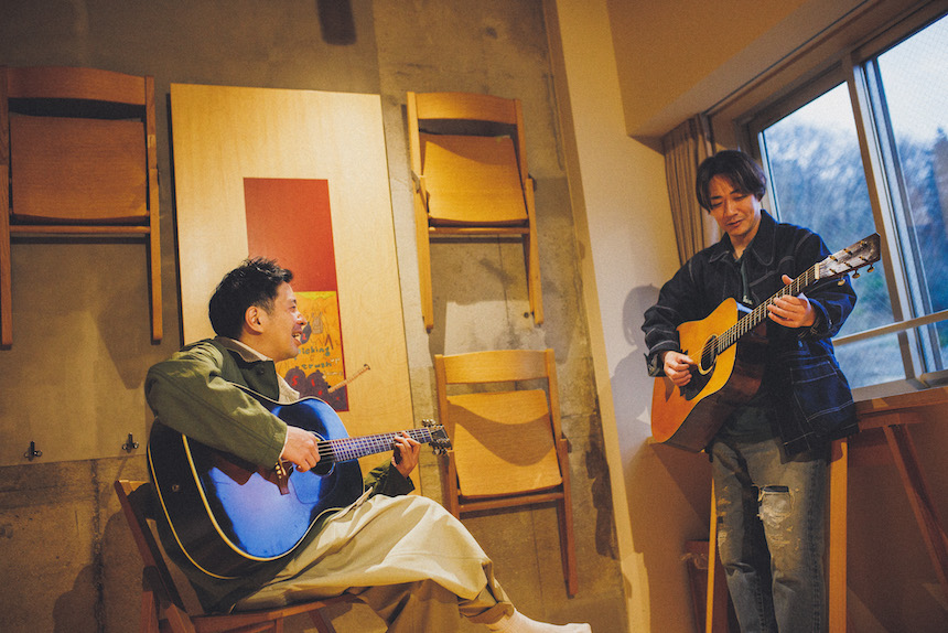 お互いに楽曲を提供し合ったり、ふたりでキャンプへ出かけたり、公私ともに仲のいいKeishi Tanakaと村松拓。そんなふたりが3月25日に大阪・服部緑地音楽堂にて野外ライブ『NEW KICKS GREENSPIA 2023』を行なう。