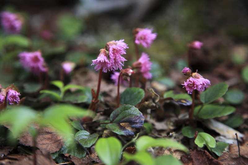 花粉がピークとなるこの時期。皆様、体調はいかがですか?ワタクシ、じつは子どものころから重度の花粉症で、鼻水・涙は止まらないわ、カラダはかゆくなるわ、頭は痛いわ……。鼻の粘膜を焼く荒療治も受けてみたものの、効き目が一時的と来たもんだ。そこで、当時はまだ珍しかった「舌下治療」を受けてみたら、これがバツグン。5年がかりで、花粉症が克服できたんです!!さあ、皆さんもカネで健康を買おうではありませんか~って、表現の汚さが笑えない(笑)。……ということで、今月はそんなワタシのイメージと無縁の華やかなお花、イワカガミをご紹介します。
