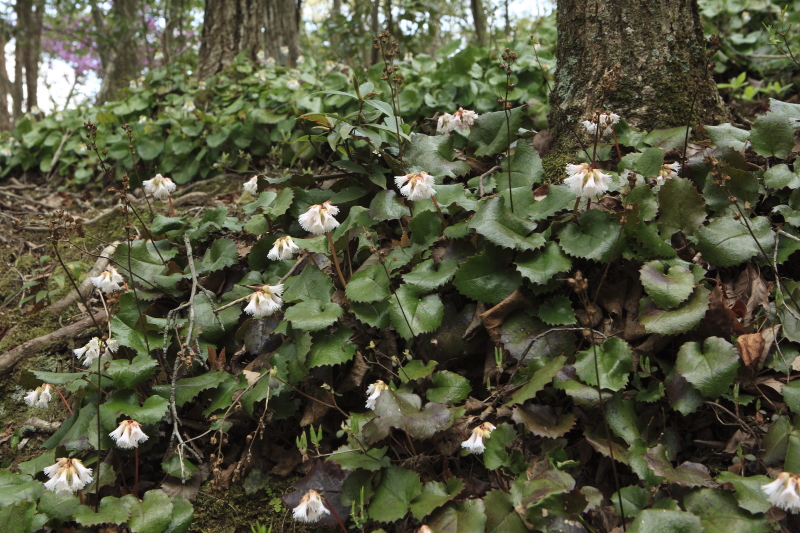 至極まっとう&ロジカルなツッコミをしたくなったわけですが、真実は闇の中。でもこれ、見てください。こちら「ナンカイイワカガミ」という清楚な別種ちゃんが暮らすのも、やっぱり森の中。しかも、標高は300mを切る場所ときてます。そのくせ、葉っぱはやっぱりツヤツヤ……。がぜん怪しさを増すこの“ツヤツヤ疑惑”。まるで接写に耐えられなくなったベテラン女優にごまかしライトを当てすぎるテレビ番組のようでは?