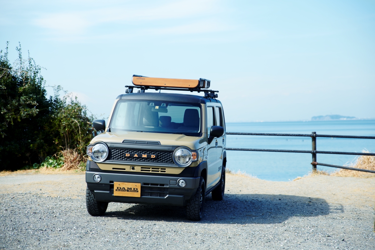 ジムニーやN-VAN など、アウトドア好きに人気のクルマをかわいくレトロに変身できるパーツをデザイン、制作する「ダムド」。ダムドのカスタムカー「HUSTLER COUNTRY」に乗って山旅をするひとりの女性の山の楽しみ方と、自分らしさにつながる愛用道具を紹介。クルマもアウトドアを充実させる大切な道具のひとつです。