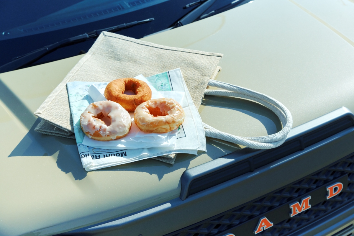 ふもとの町で人気のドーナツをお土産にしたり、海沿いの駐車場にクルマを停めアウトドアチェアに座ってのんびり本を読んだり。予定を詰め込みすぎない旅なら、そのときの気分に合わせて“楽しみ”を変えてもいい。