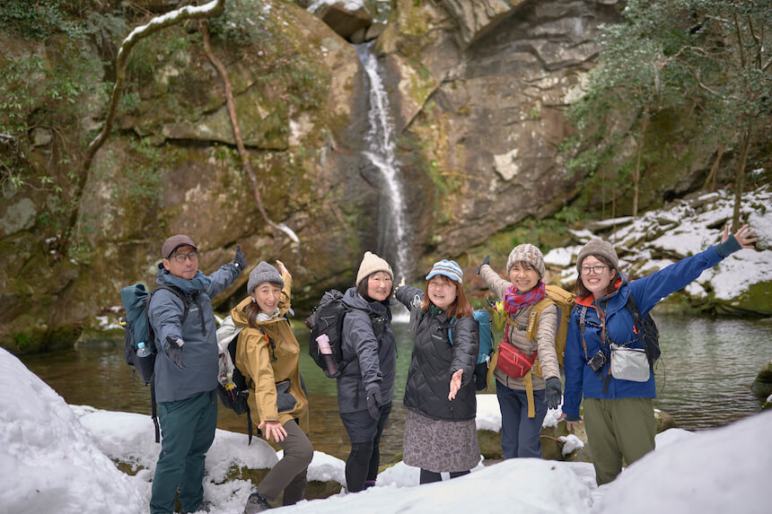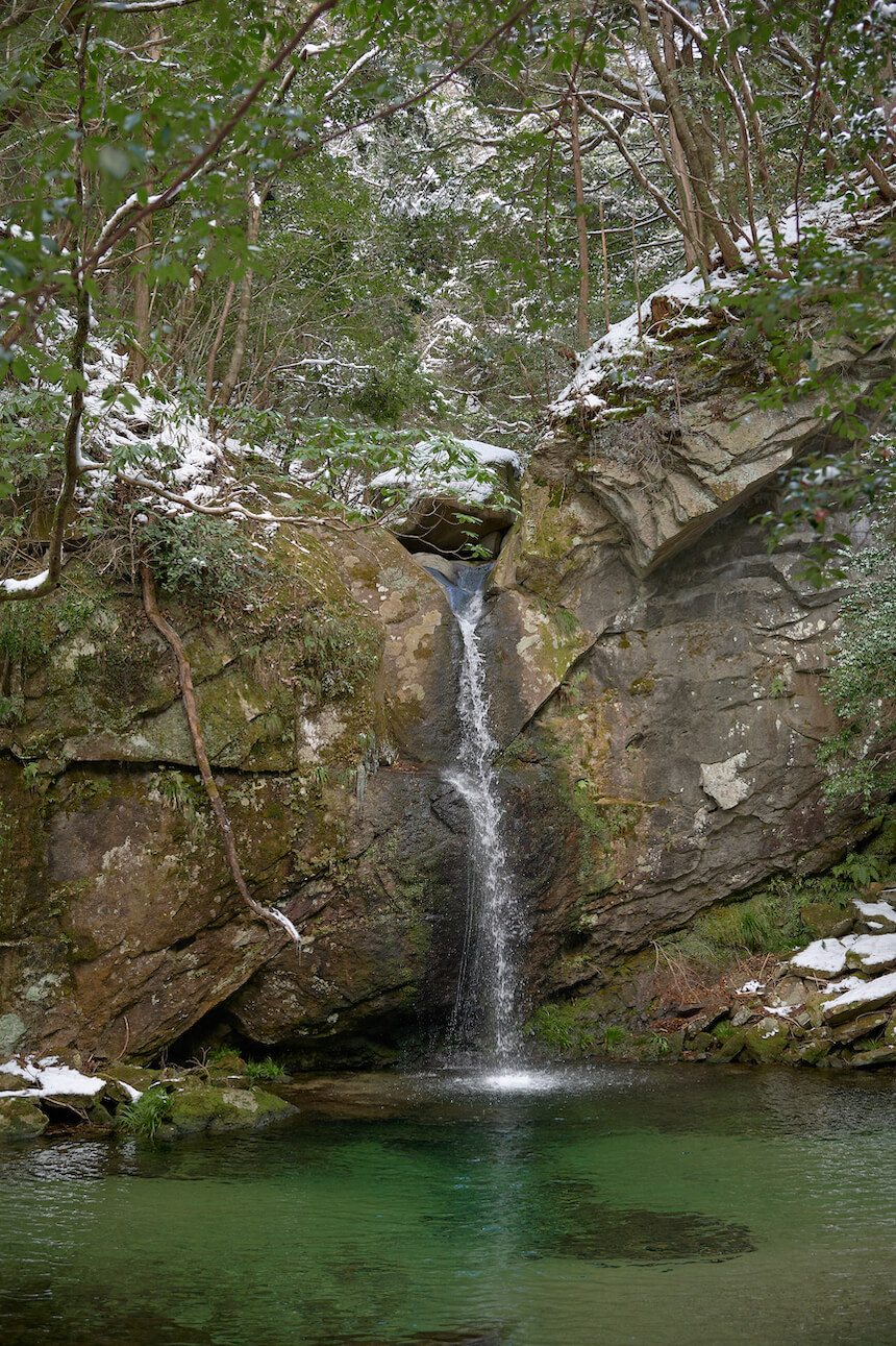 全長約3kmにわたり続く渓谷のあいだをすり抜けていくように続くトレッキングルート。夏でもひんやりとした空気に包まれるこの場所は、田辺の豊かな自然や食を育む水の原点ともいえる。苔むす森のなか、いくつも滝を横目に進めば、ここが「水の国」と呼ばれる所以を感じるはず。