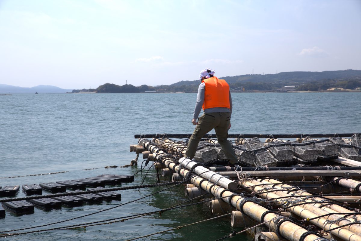「有明海の牡蠣は小ぶりなことが特徴です。やっぱりその場所で育ってきた牡蠣のほうが、環境に合わなくて失敗することが少なく、強い牡蠣ができる。いっぽうで、牡蠣は重さで出荷額が決まるから、ほかの県の大きくなりやすい種を持ってきて、はやく大きく育てるほうが効率がいいし、実際に周りもそうしている人が多いです。そもそも、シングルシード式もはじめは誰もやったことがないから、絶対にうまくいかないと言われてきました」