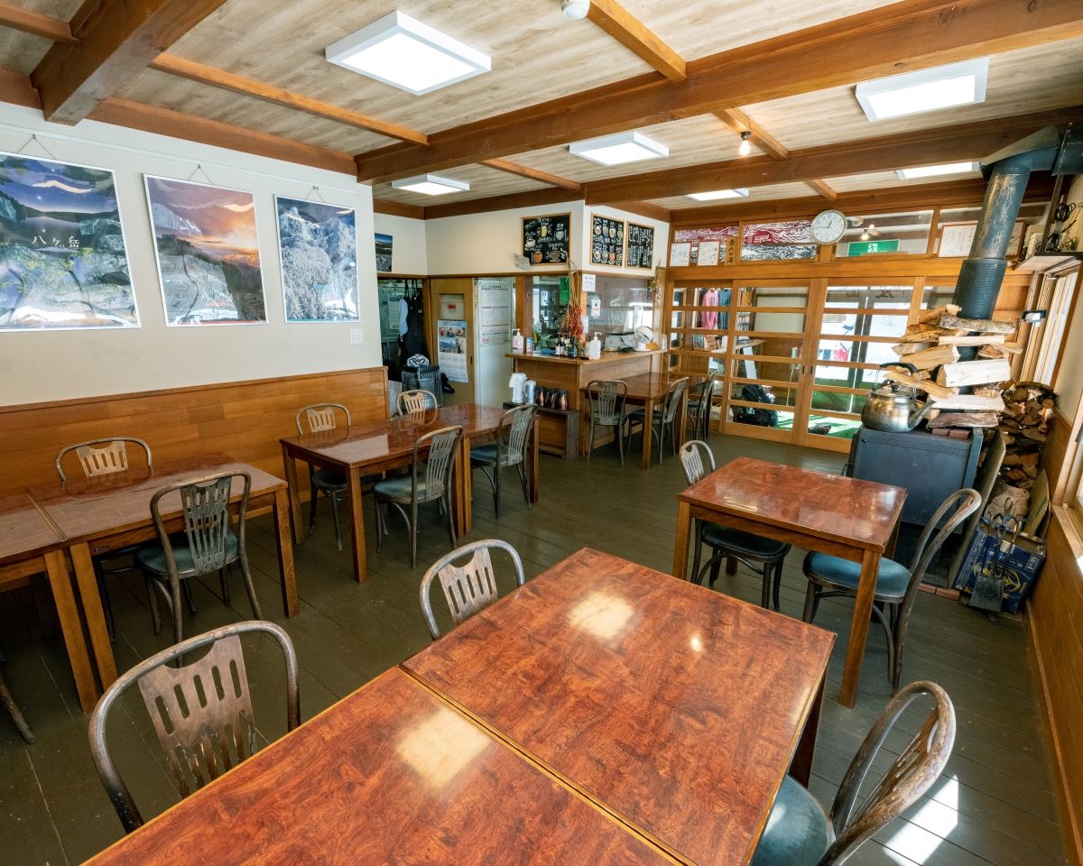 夏沢鉱泉のコンセプトは「快適、清潔でくつろげる空間」。日本の山小屋で最初に設置された、臭いがしない本水洗方式の水洗トイレがあることは、とくに山小屋に泊まったことがない人にとってうれしいポイント。また水力発電によって充分な電力が供給されるというポテンシャルを活かしFree Wi-Fi、クレジット&電子マネー決済が利用できることも、快適性を高めてくれるサービスだ。