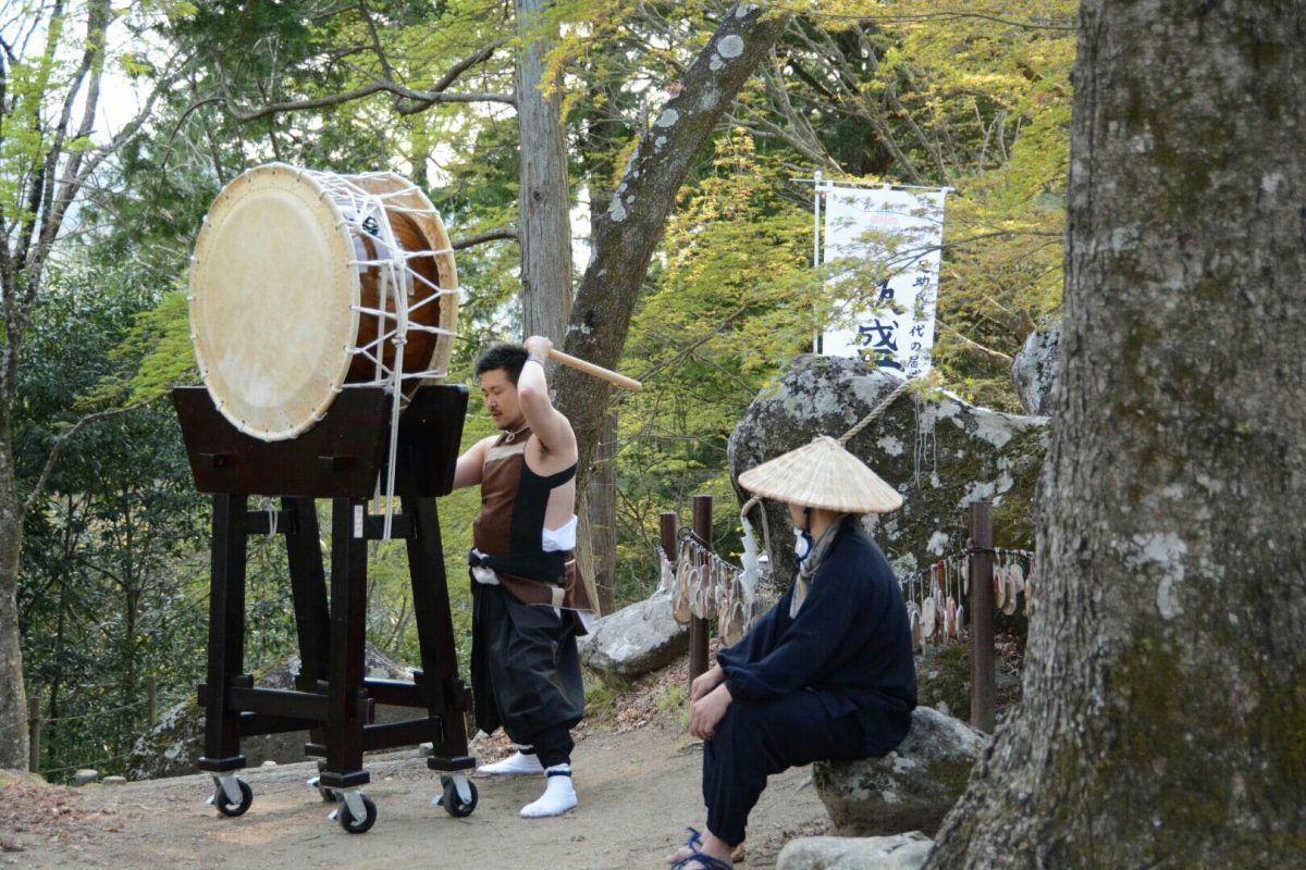 足のお祭りの日に、大きな和太鼓を足助飯盛山の山頂へ持ち上げ、奉納演奏をするという企画を「神様百名山を旅する」の広田勇介さんが立案しました。演奏者は山伏でもある千代園剛さん、30kgの和太鼓を山頂まで運ぶのは日本一過酷な山岳レース「トランス・ジャパン・アルプス・レース」を4連覇した望月将悟さん。内容を想像しただけでも神秘的でワクワクします。その模様を広田さんがリポートします。