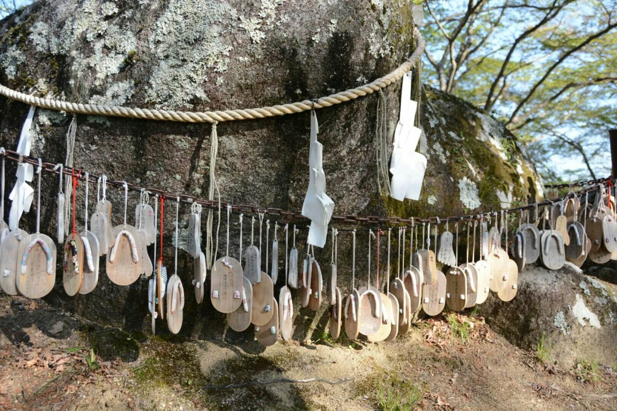 ようやくたどり着いた山頂には、足の神様に奉納する絵馬ならぬ絵足がところ狭しと掲げられていた。