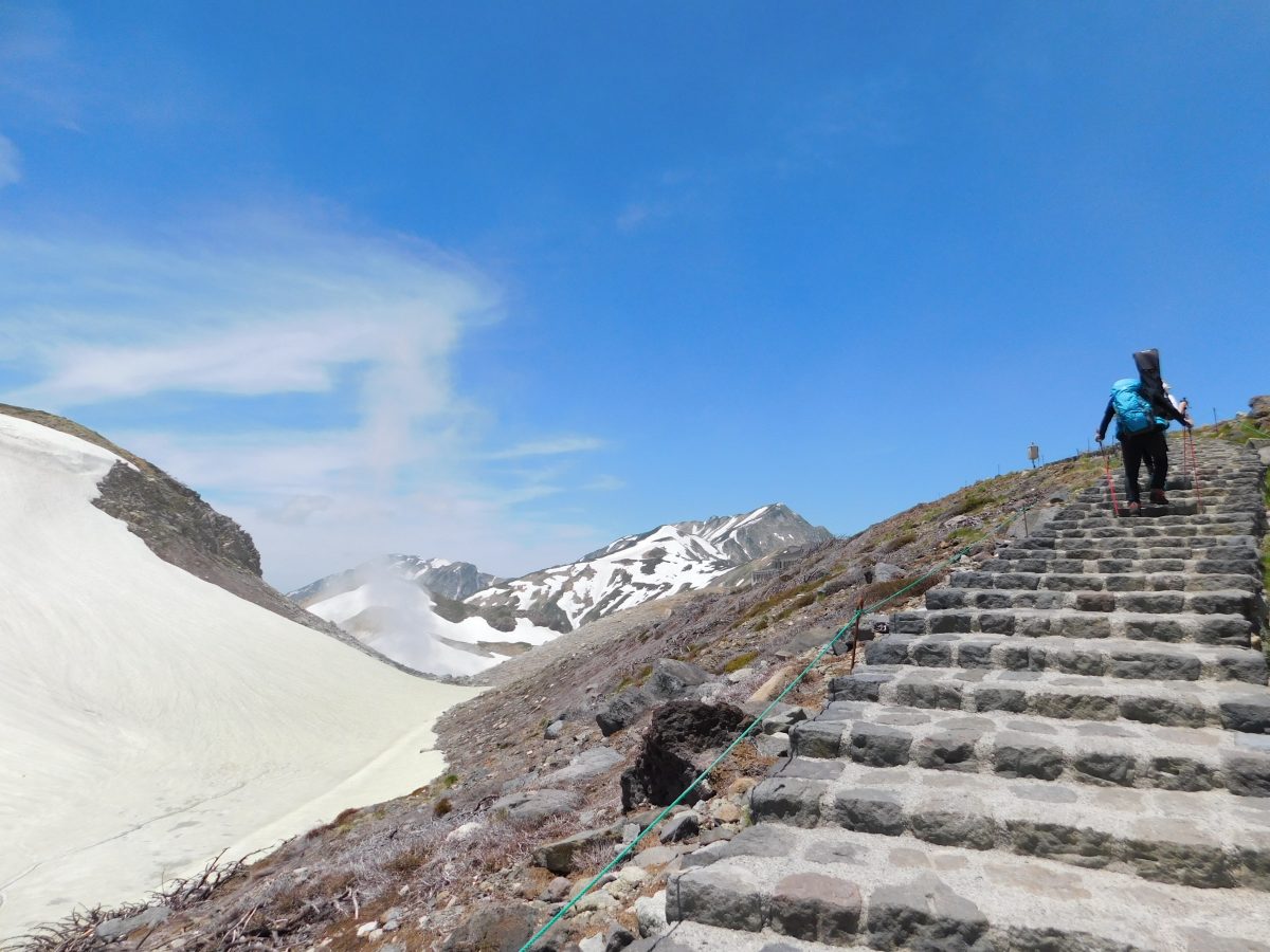 雷鳥荘に限らず立山室堂にある宿は、立山三山、大日岳、劔岳などさまざまなルートを歩くための拠点となる。経験値や体力に応じて、そういった登山に挑戦するのもおすすめだが、ここでは、のんびりみくりが池を一周するルートをご紹介。雷鳥荘を起点にぐるっと回れば、行動時間は1時間30分ほど。この区間であれば、石造りの遊歩道を歩けるので、本格的な登山靴でなくとも楽しめる。