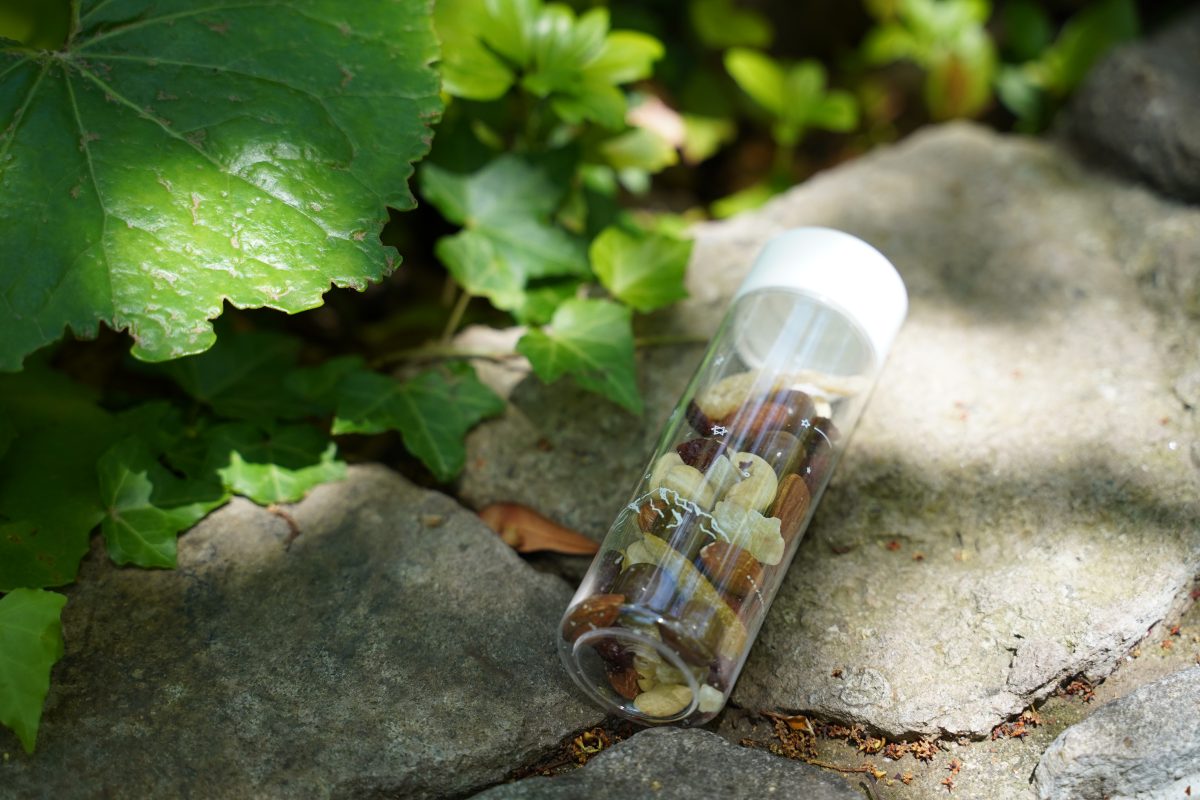 ミニボトルは、山ごはんでの調理用の水や、山小屋からその周辺を散策するときに持っていく飲み物を入れることをイメージ。サコッシュやアウターのポケットに入れて、気軽に持ち歩けるアイテムです!
