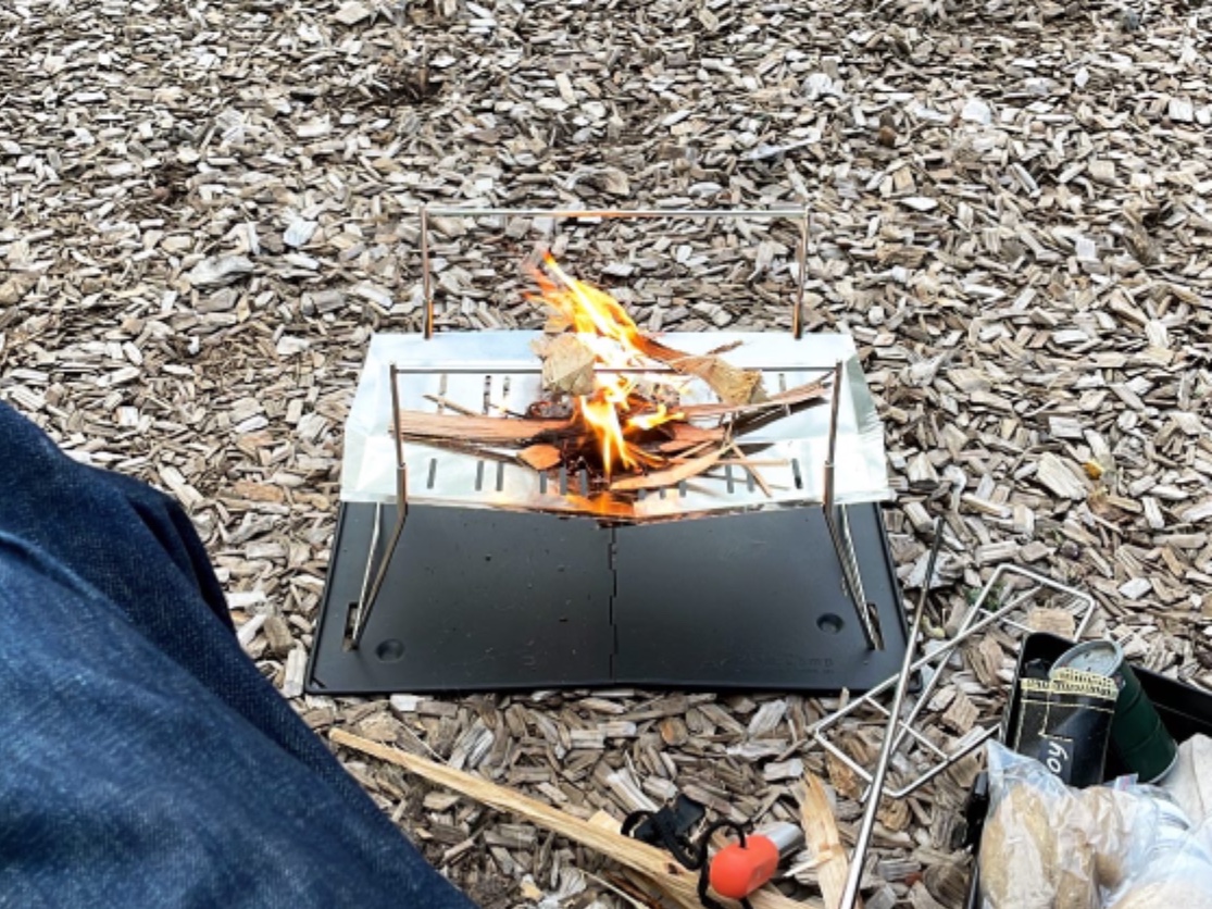 今回の山登りには新しいギアがなかったので、ここでは最近手に入れた新しい焚き火台を紹介。ガレージブランド「TokyoCamp」の焚き火台は、おしゃれなのはもちろん、軽さや燃焼効率、さらには五徳の高さなど、使いやすさ的にも◎。価格も含め、ソロからふたりくらいまでのキャンプにおすすめ。