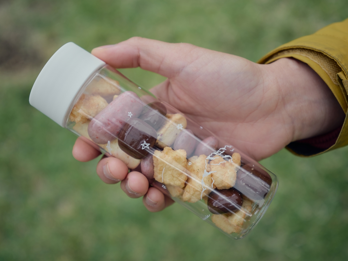 ナッツやチョコレート、グミや揚げせんべいなど、好きなお菓子を入れてオリジナル行動食を。見た目にこだわりながら詰めれば気分もアップ。片手でサッと食べられるのも◎。