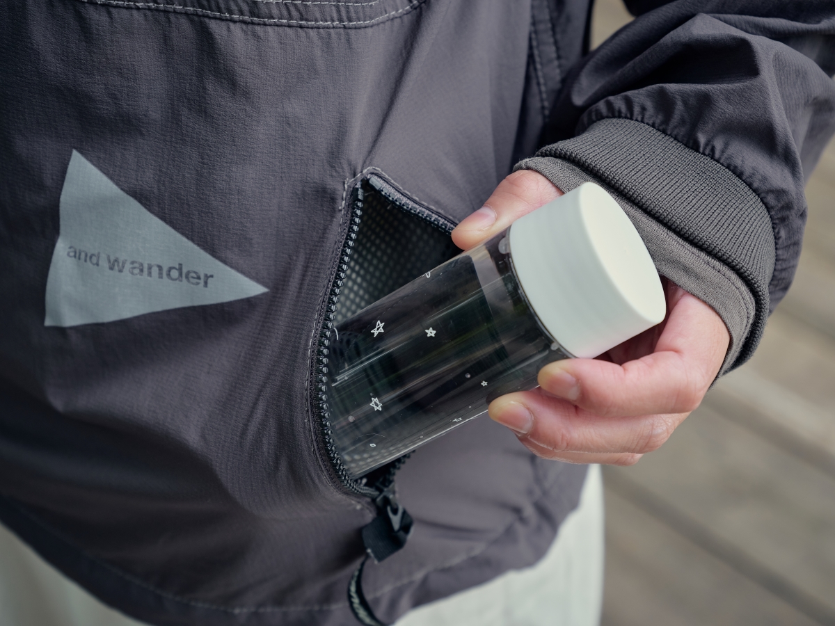 山でも街でも活躍するサコッシュにもイン。500㎖ 前後のボトルを持っていくには大きすぎるときなど、いまよりもっと気軽にマイボトルを持ち歩きたいときに重宝する。