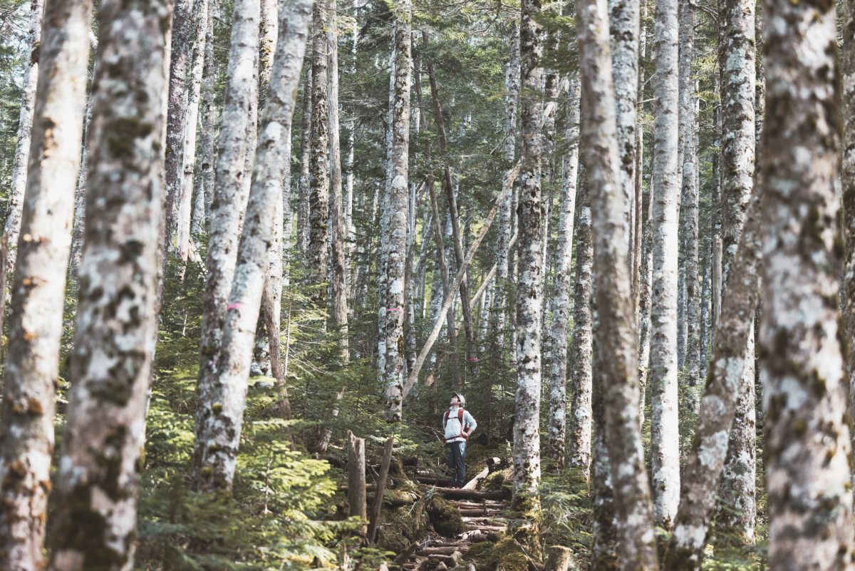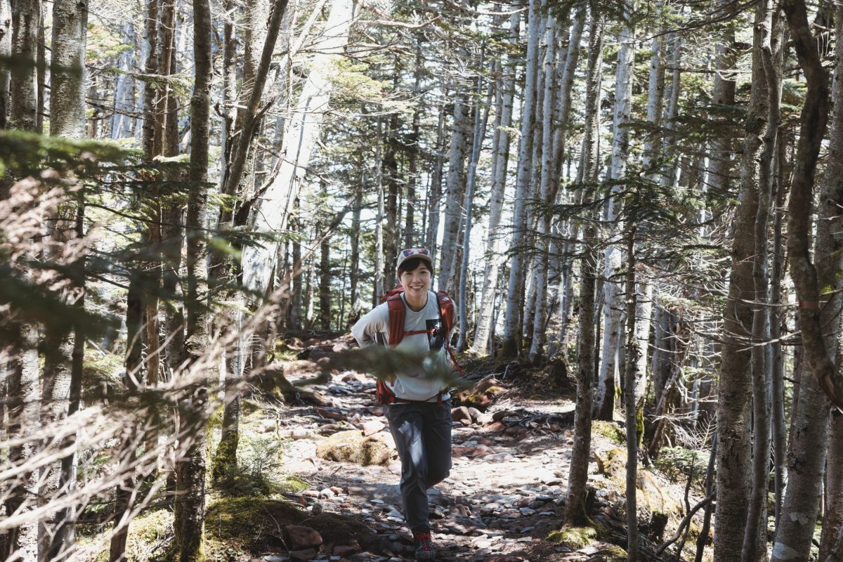 夏沢峠を越えて、樹林帯を抜けて、一歩ずつ。幼いころお父さんと歩いた記憶をたどりながら、樹木の間からのぞく青い空「八ヶ岳ブルー」に近づいていく。