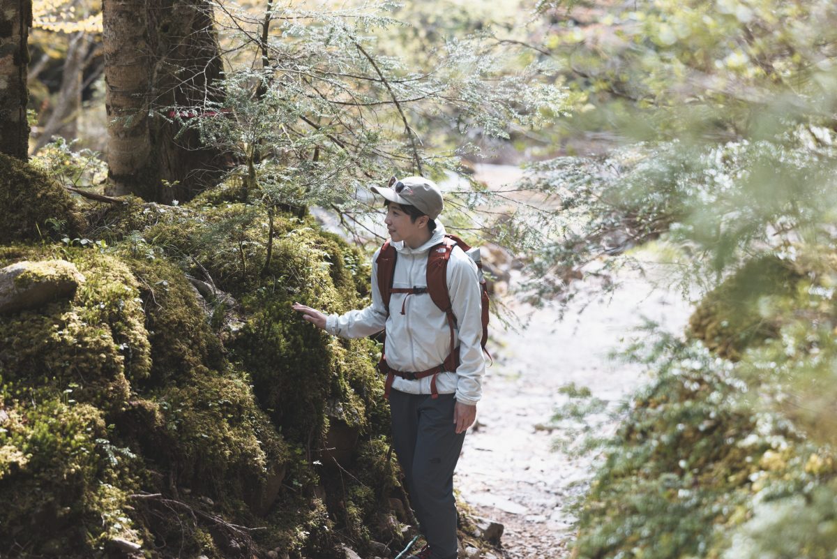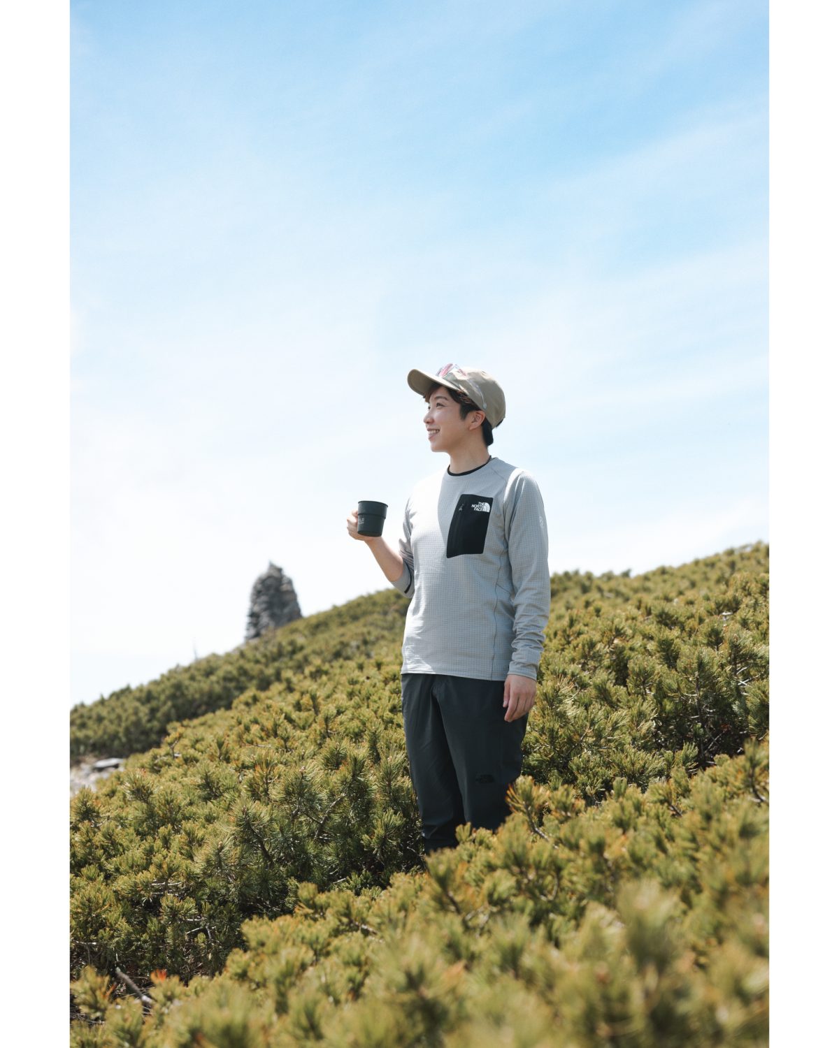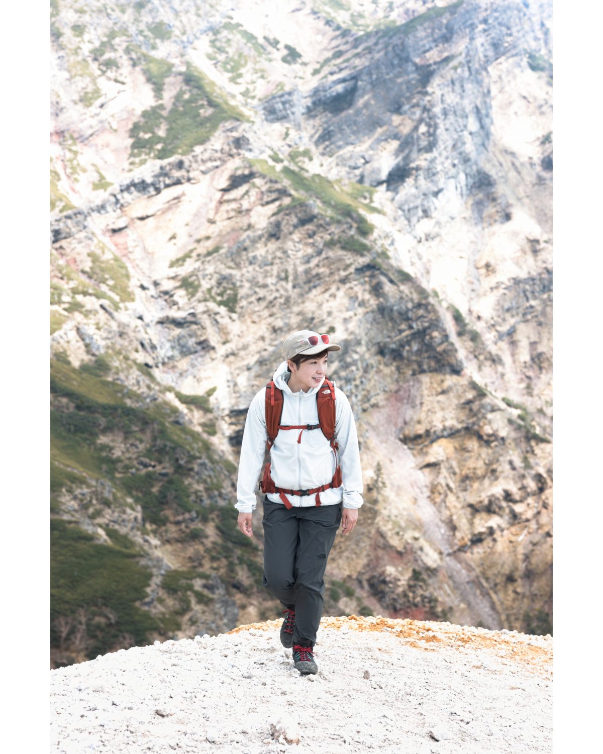 登山再開に向けて、忙しい合間を縫って準備した山のウエア。普段の生活でもシームレスに身につけられるものをと選んだ、自身の感性に合うアイテムをまとい、ぶれることのない自分の軸で山の空気を丁寧に味わい切る。