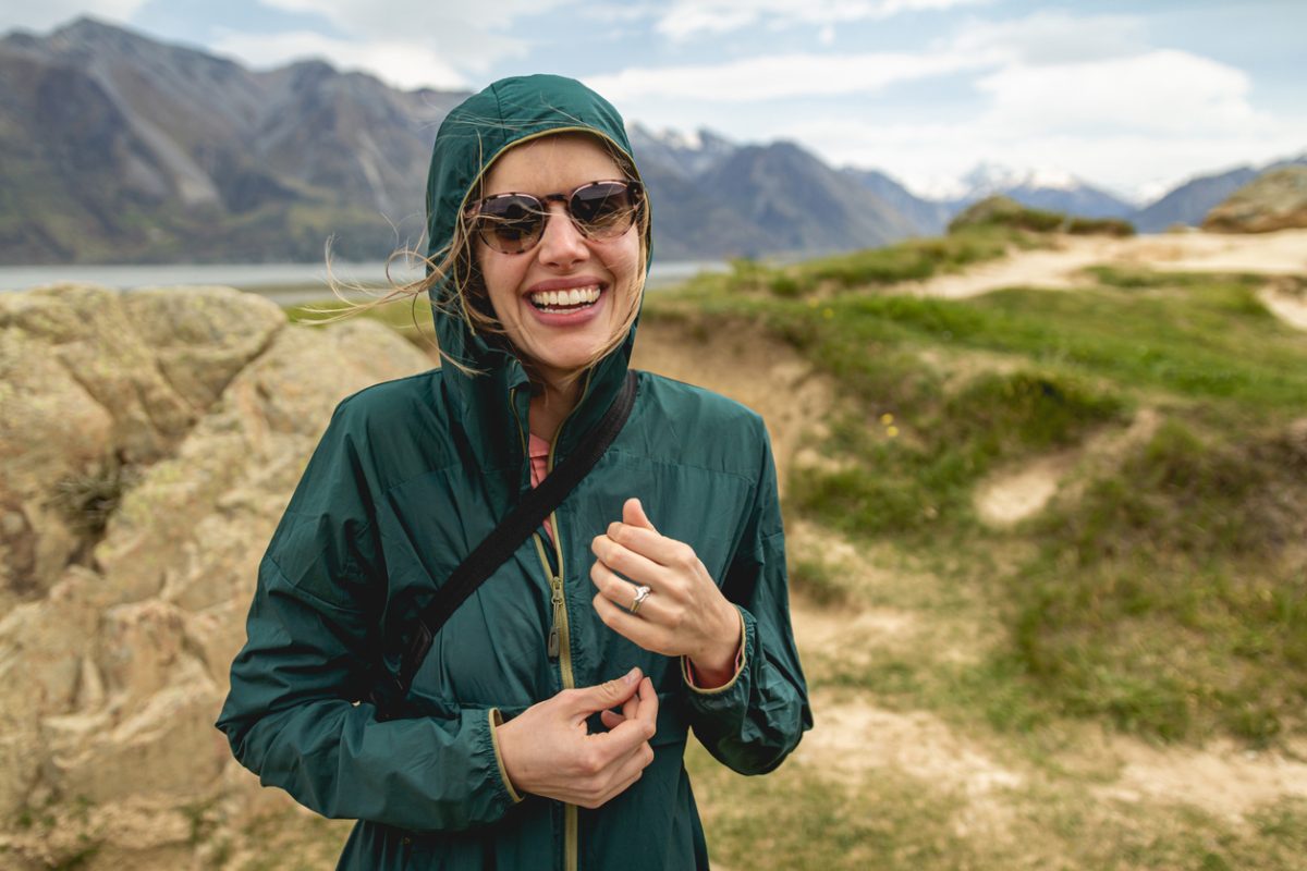 紫外線は服を通しても、肌にダメージを与えます。特に標高の高い場所では紫外線が強くなります。登山では、UPF効果のあるウインドブレーカーを羽織って肌へのダメージを防ぎましょう。