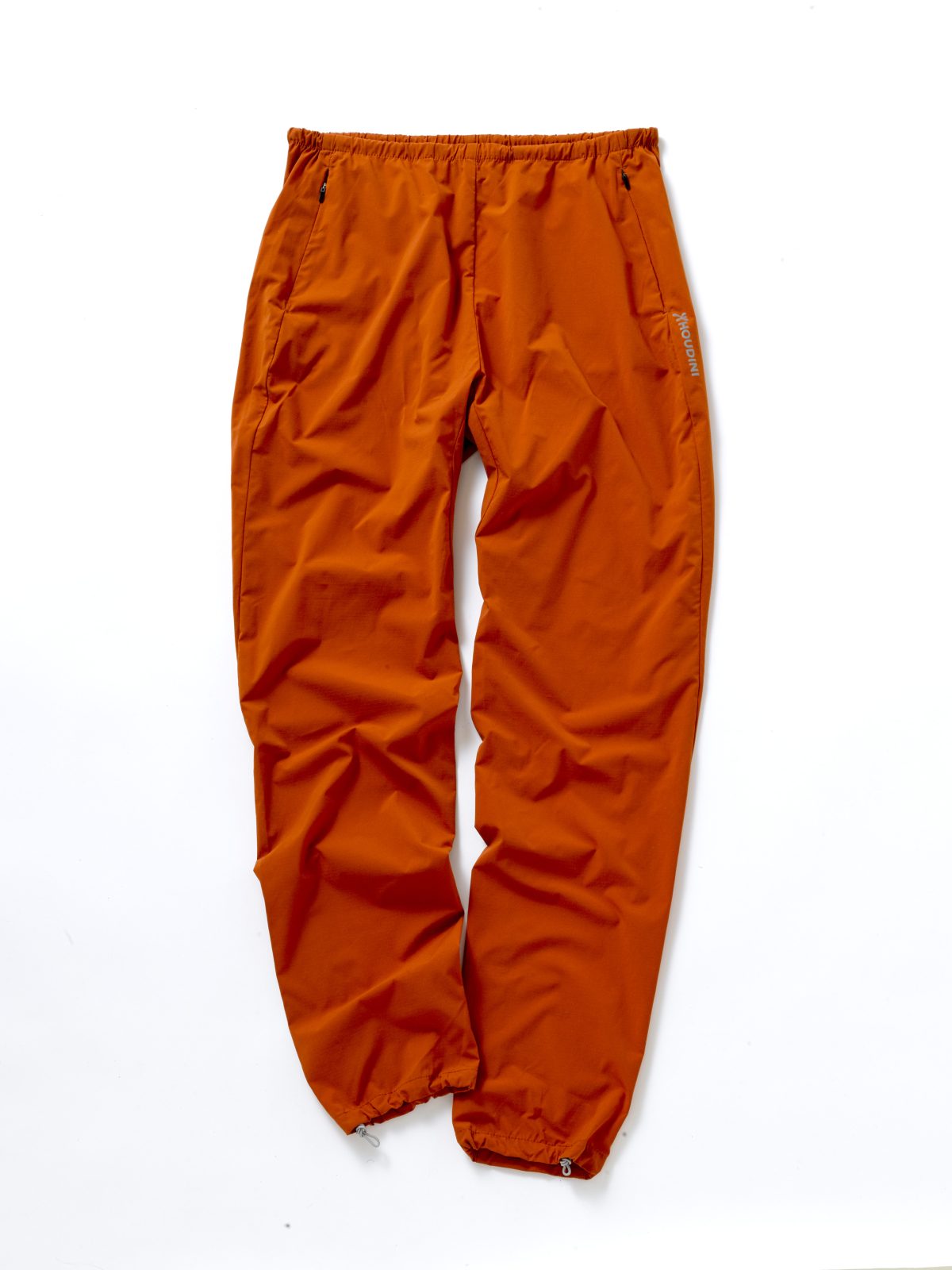 ストレッチ性が高く、ゆったりシルエットのパンツを選べば、寒さ対策のために保温タイツを着込んでもストレスなく歩けます。軽量で速乾性も高いため、暑い時期の低山やランニングなど、一年をとおしてなにかと使えるアイテム。鮮やかなテラコッタ色で気分を上げて。