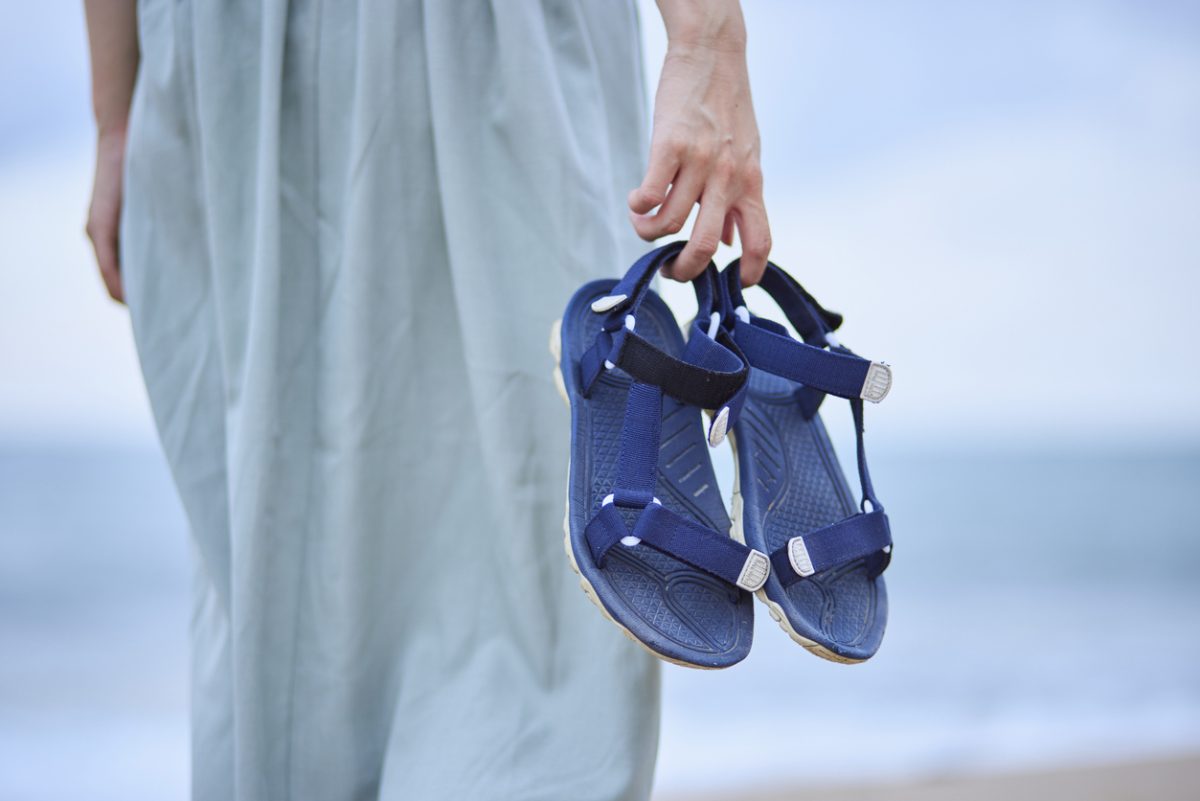 脱ぎ履きしやすいですが、足の甲が露出しているため、砂や小石などが入ってしまう場合があります。また紫外線に当たりやすいので、日焼けをしたくない方は足にも日焼け止めを塗っておくとよいでしょう。