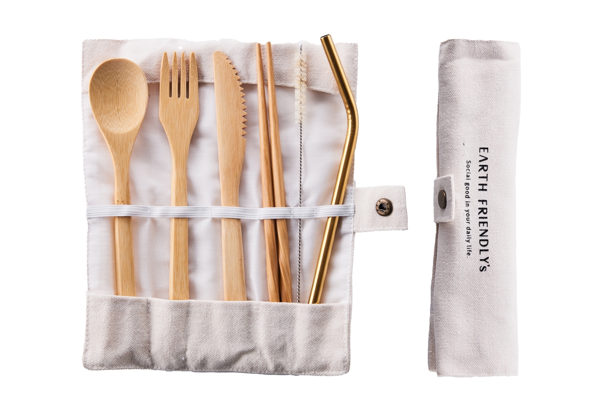 丸めてスナップで留められるカバー付きで、持ち運びに便利。外食時に携帯すれば、割り箸や使い捨てストローの無駄遣いを避けることができる。ストローブラシの毛はナイロンでなくサイザル麻、コーティングにはオリーブオイルを採用!