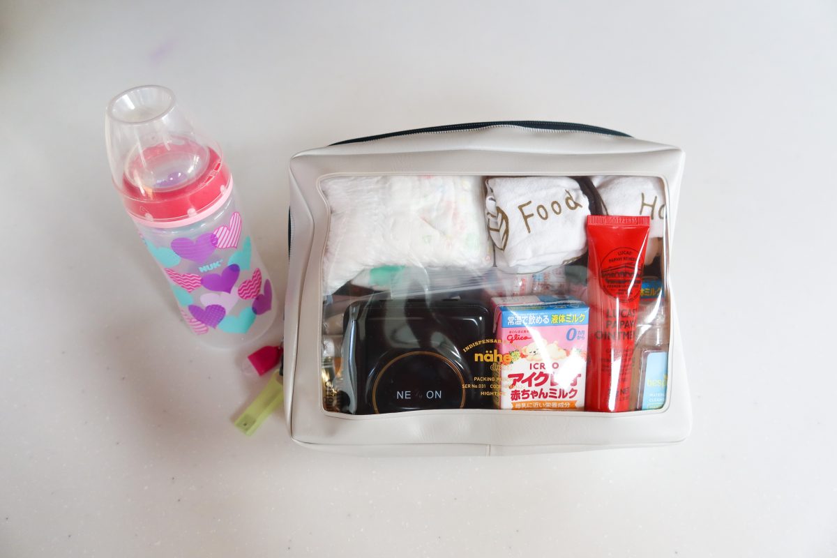 ・持ち物が多くなりがちですが、中身が見えるクリアポーチで必要なものがすぐに取り出せます。
