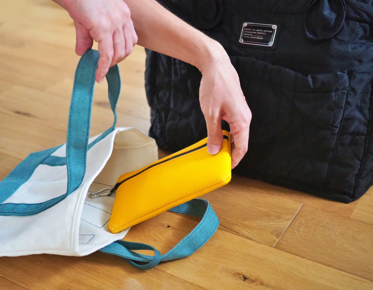 ポーチのデザインや中身は人それぞれ。濡れても中身を守る防水型や、肩から下げられるストラップ型など、防災ポーチならではの選び方はあるものの、毎日持ち歩きたくなるデザインやモノが入っていれば積極的にバッグへ入れたくなりませんか?