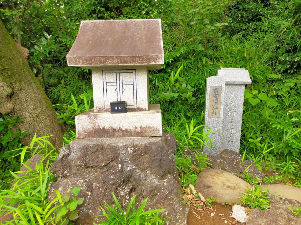 一合目の石碑をすぎるとすぐに、御胎内(おたいない)と呼ばれる、富士山信仰に欠かせない石碑が建てられています。頂上には、小さいながらも「浅間神社」と書かれた石柱と祠があります。そんな音羽富士からRさんへのアドバイス