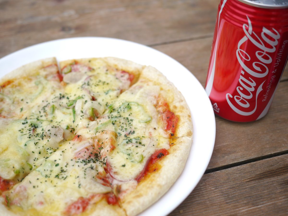 外のベンチで待っていると番号で呼ばれ、ピザの焼き上がり。薄めの生地がさっくり香ばしい! ピザにはやっぱりコレでしょ、と合わせて購入した缶コーラをぷしゅーと開けたとき、「はーい‼ 全員集合っ」。先生の号令が響き渡りました。ちょうど長野県の教育行事“学校登山”で登ってきた中学生たちの集会がすぐそばで始まったのです。規律正しく並ぶ彼らの羨望の眼差しを尻目に、ピザとコーラを頬張るワタシ。ぜいたくで自由な気分に浸り、大人になるって楽しいぞ! と思えた味です。