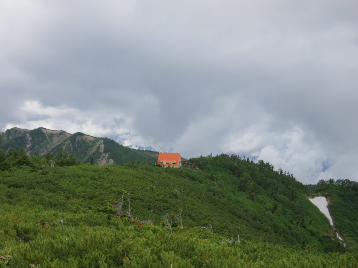 北アルプスにある爺ヶ岳・鹿島槍ヶ岳を縦走するため柏原新道を登りきると、出迎えてくれたのは赤い屋根のかわいらしい種池山荘。売店では「ピザ祭り」を開催中で、迷わず注文を入れました。