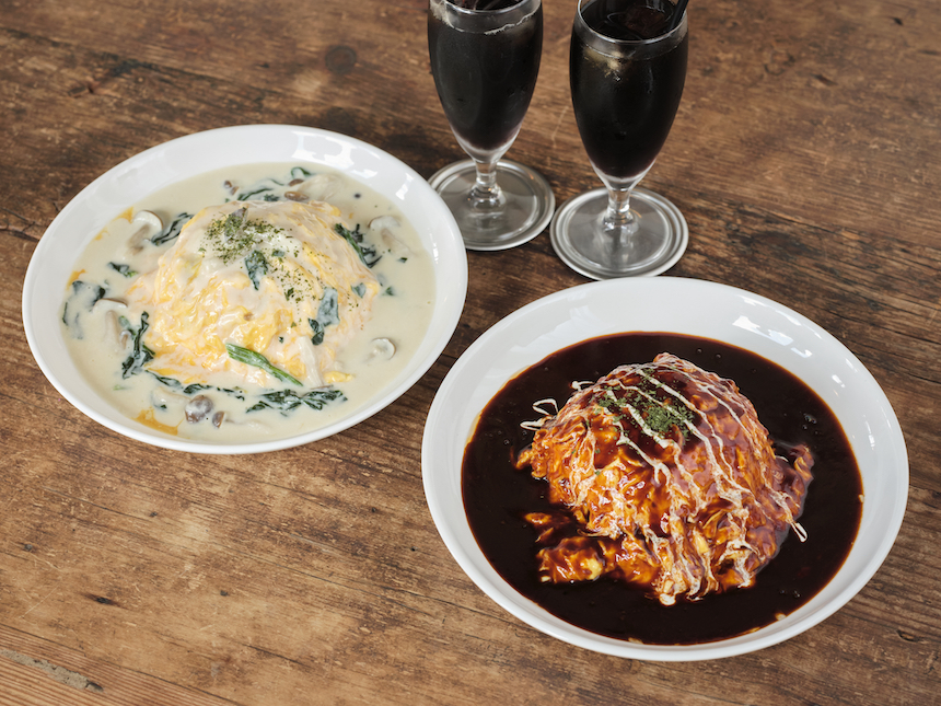 ▲左)きのことほうれん草のクリームオムライス ¥1,150 右)ふわとろオムライス ¥1,050