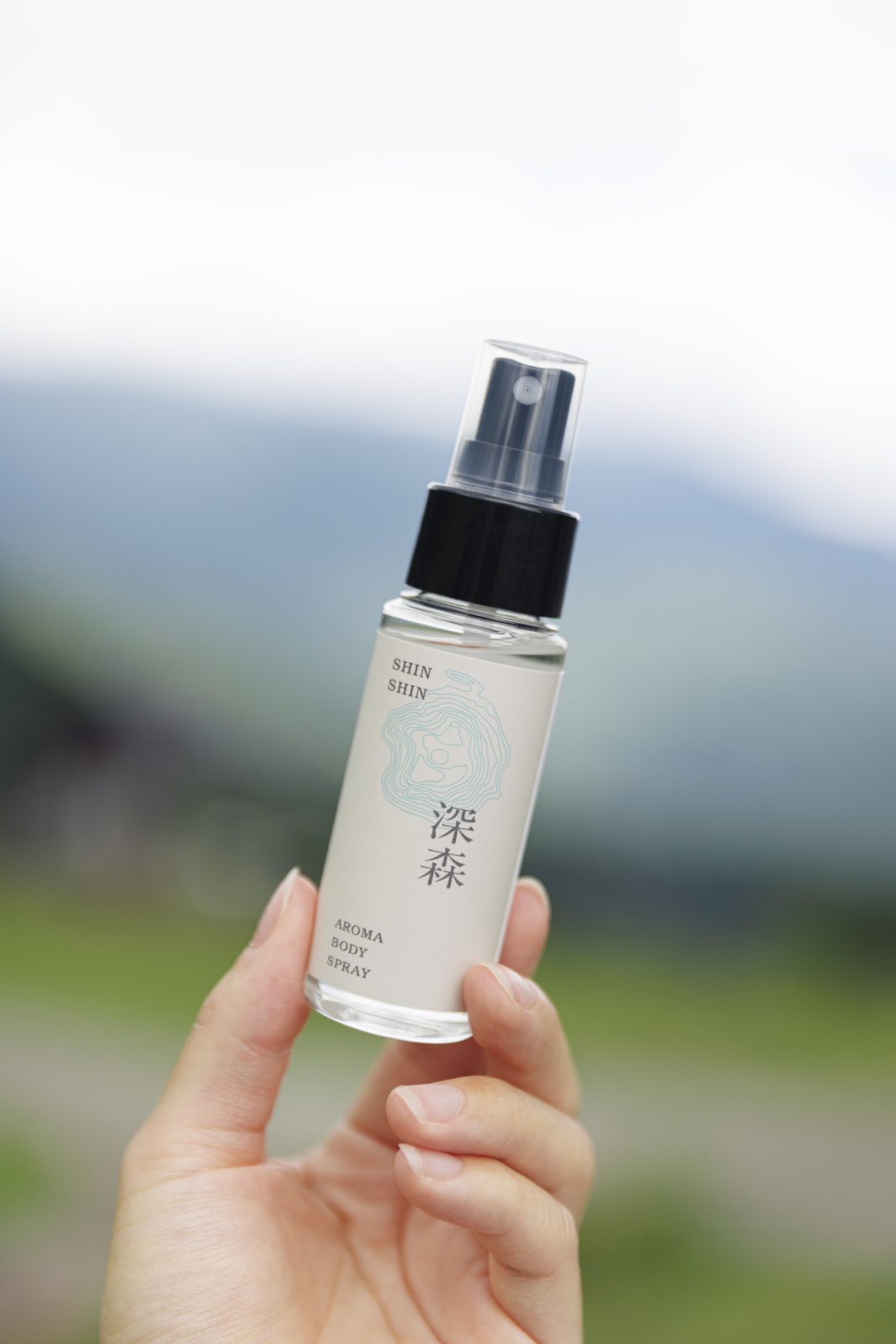 リュネッツオリジナルのアロマボディスプレー(全身用ミスト)。深い森のなかにいるようなヒノキとハッカの爽やかな香りが心地よく、リラックス効果や虫よけ効果、消臭・抗菌効果などが期待できる。植物由来で安心して肌につけることができるため、長期縦走でにおいが気になるときや、テントや山小屋でぐっすり眠りたいときなどにもおすすめ。ルームスプレーとしても使えるため、幅広いシーンで役立つ。