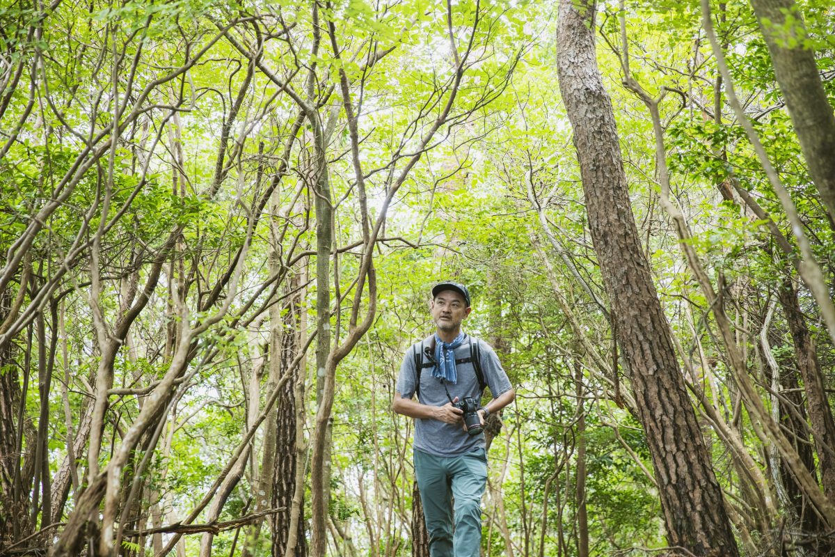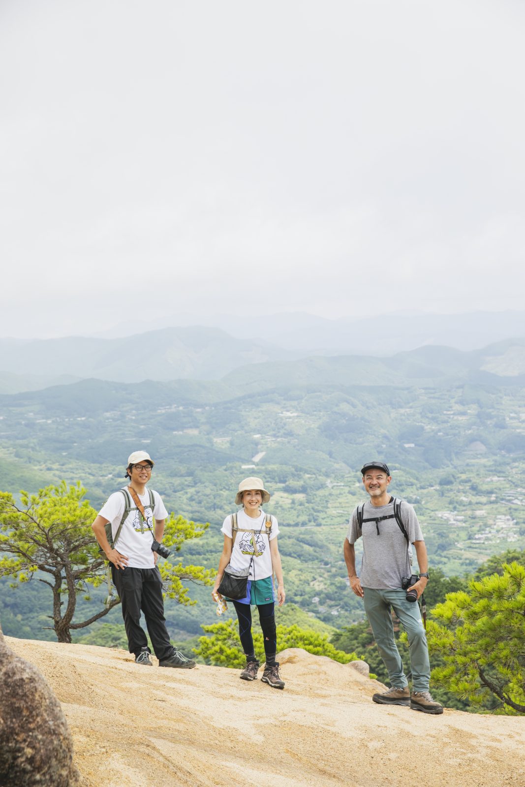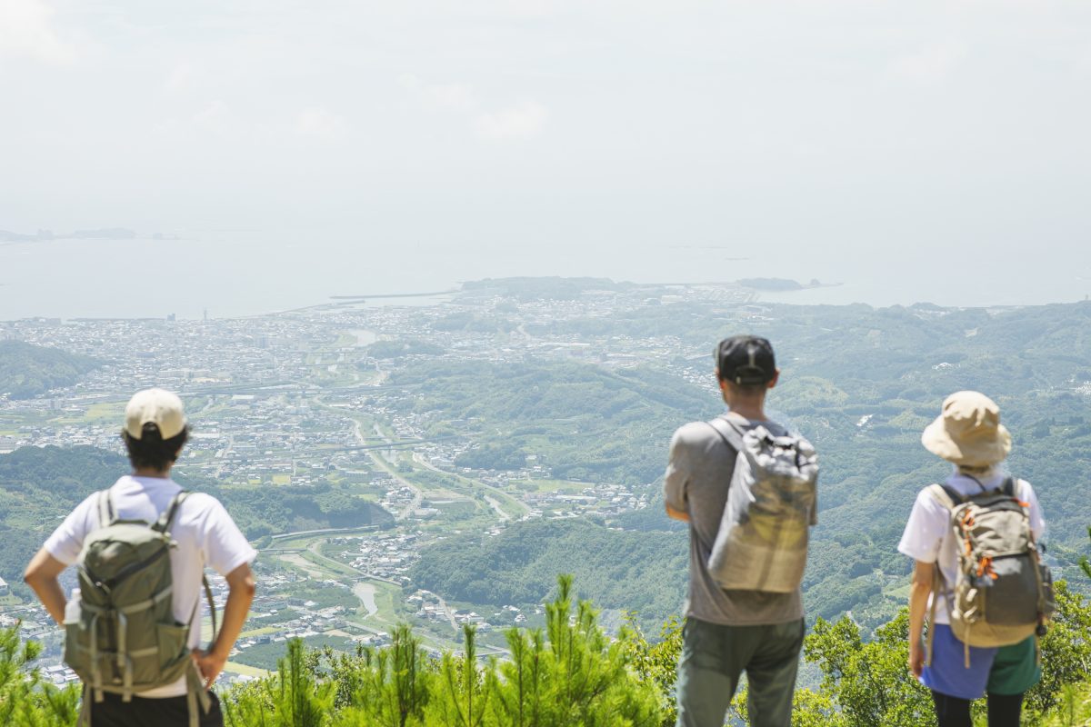 田辺のまちをぐるりと囲むように連なる低山。自分の足で一歩ずつ歩き、その頂上に立つと、眼下に広がるまちも海も、蛇行しながら流れる川も、田辺の風景らしいミカン畑も眺めることができ、すべてがつながる瞬間に。