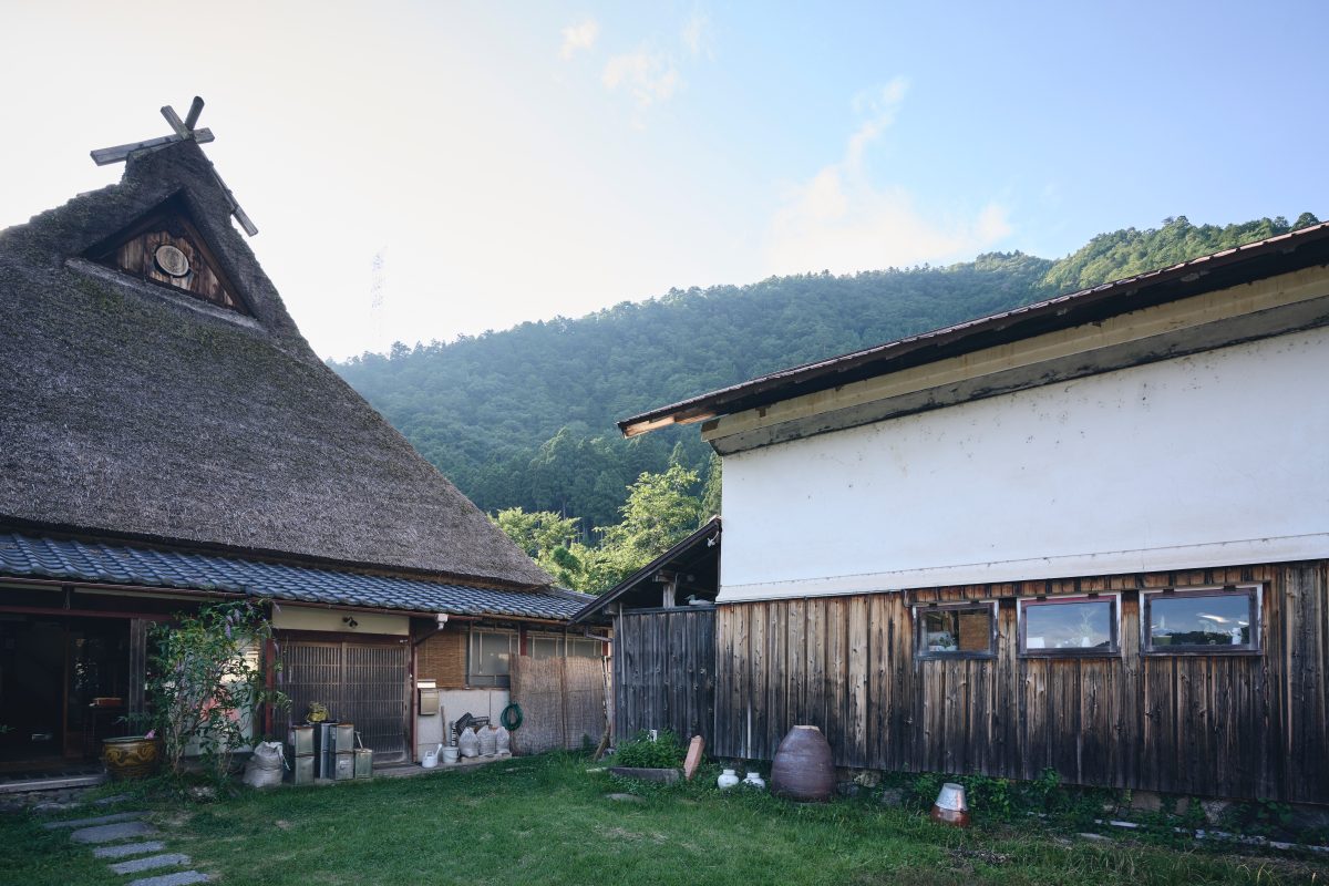 器を生み出すアトリエは茅葺き屋根の集落のなか