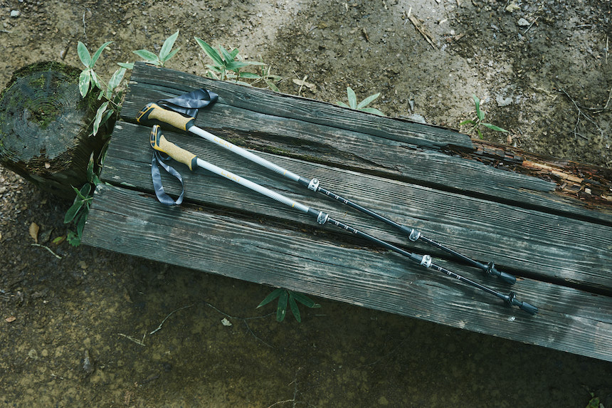 山歩き時の身体の負担をやわらげてくれる、トレッキングポール。