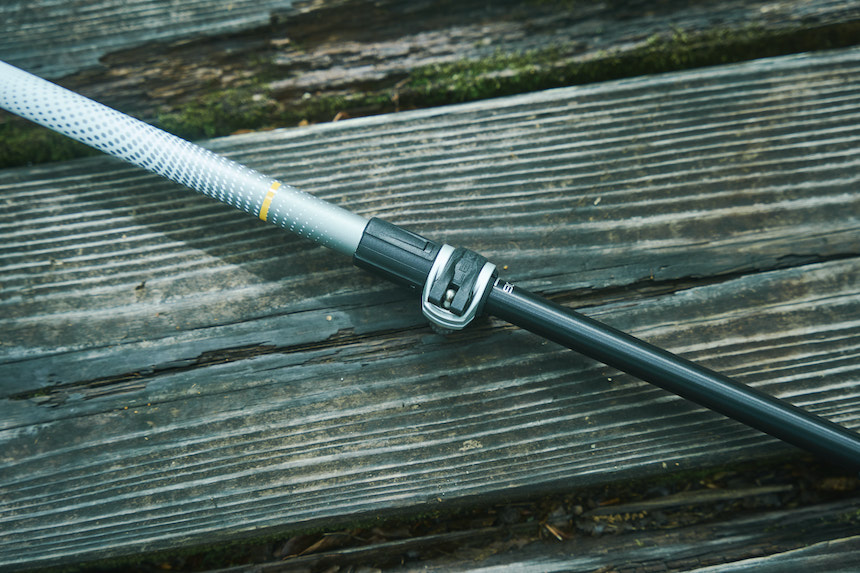 サイズ調整や収納は、2カ所のレバーロックで固定するオーソドックスな伸縮タイプ。「とくに女性の方や手袋をしているときは、ポールを伸縮させるのに苦労することが多いんですが、クレシダのレバーロックはあまり力を入れなくても簡単にレバーの開閉ができます」